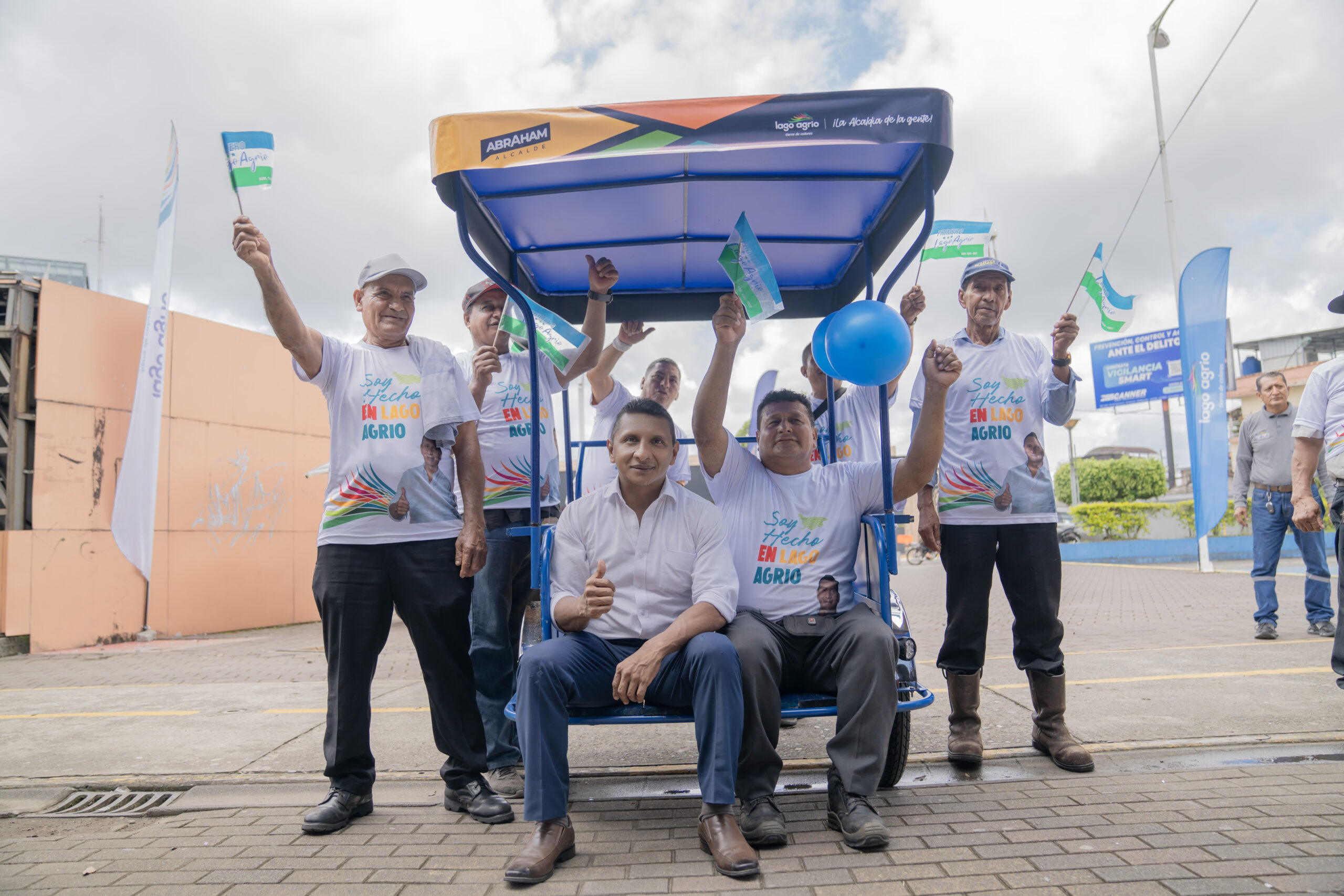 A estos pequeños emprendedores la Alcaldía de Lago Agrio, les entregó un triciclo nuevo, vehículo a pedal que les permite brindar el servicio de transporte de carga dentro de la zona urbana de Nueva Loja y así generar ingresos para solventar su economía familiar.