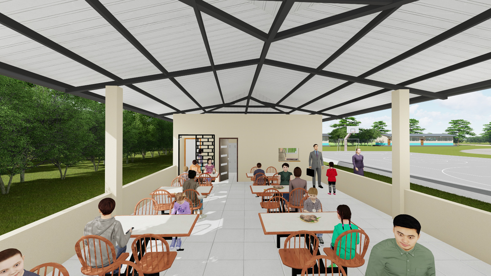 De acuerdo a lo expuesto en la socialización, la obra se ejecutará en un área de 149.46 m² y dispondrá de comedor, baño, lavamanos, cocina, bodega, acera perimetral y rampa de acceso.